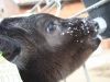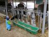 6 bis 8 Wochen vor dem erneuten Abkalbetermin wird die Kuh „trocken gestellt“, d.h. die Melkungen hören abrupt auf und die Milchproduktion versiegt. Das ist wichtig, damit das Eutergewebe sich zurückbildet und bei der nächsten Kalbung wieder neues, gesundes Gewebe aufgebaut wird. In dieser Zeit soll sich die Kuh erholen und auf die neue Kalbung vorbereiten, daher wird jetzt Kuhkomfort groß geschrieben. Zum Trockenstellen wird ein Klauenpflegeschnitt gemacht, damit Klauenprobleme in dieser Zeit auskuriert werden können. Im Trockensteherbereich werden die Kühe wieder in einem „2-reihigen“ Abteil gehalten, um mögliche Rangkämpfe zu umgehen. 3 bis 4 Tage vor dem Abkalben wird die Kuh in den Abkalbestall gebracht.